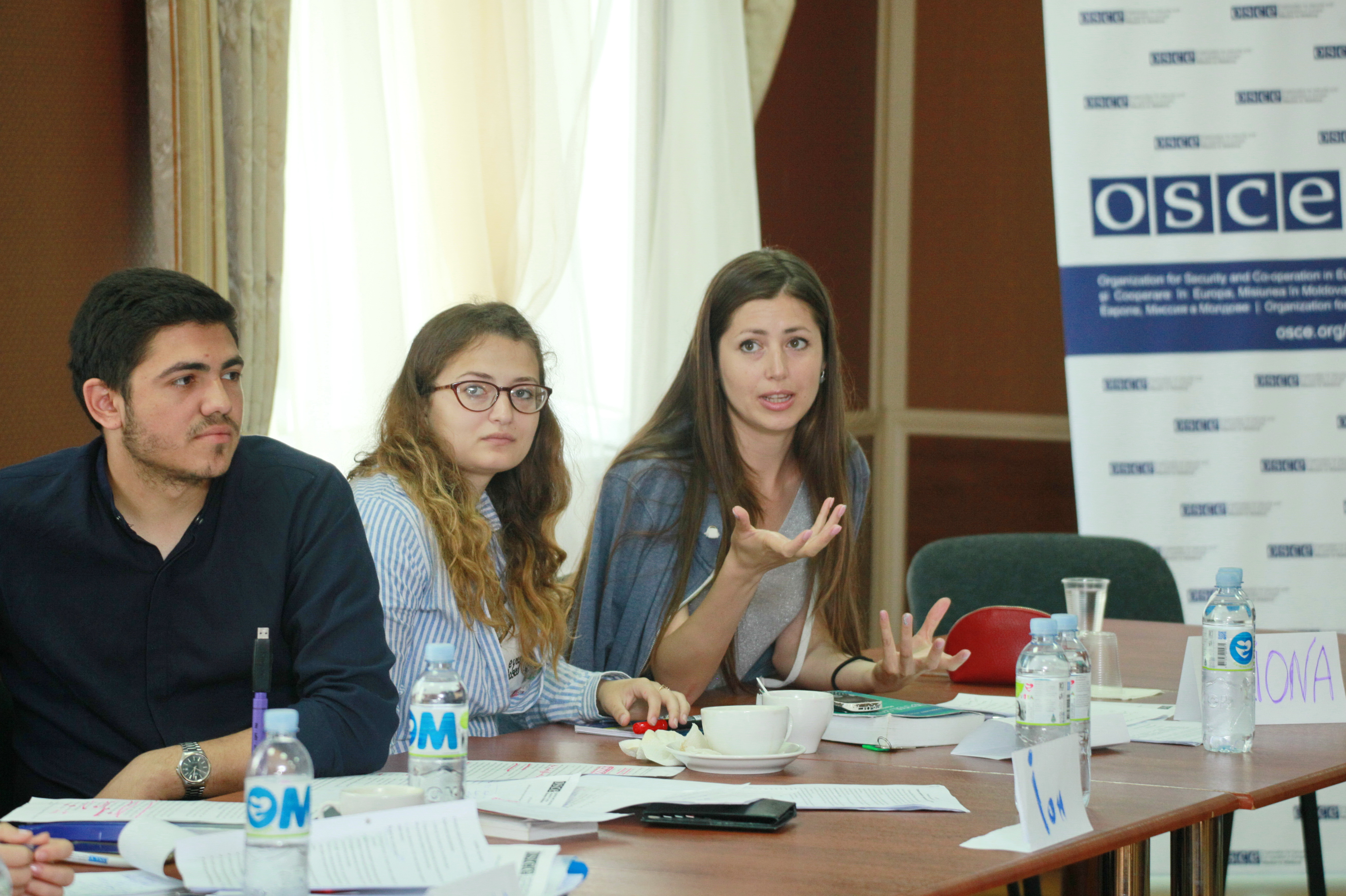 A law student states her position during a training event organized by the OSCE Mission to Moldova to improve law students skills in providing free legal aid in Moldova, Vadul-lui-Voda, 14 July 2017.