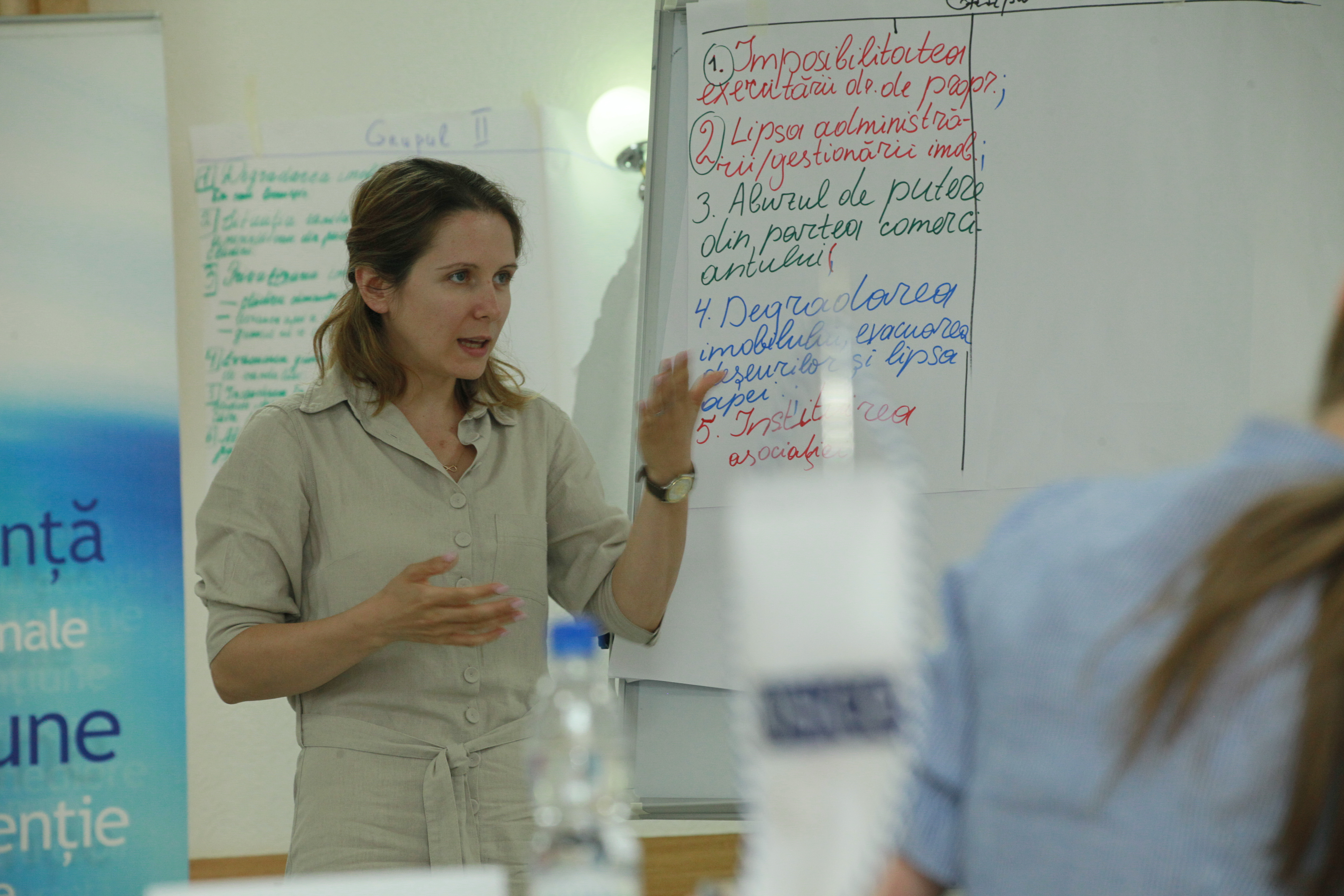 A law student practices delivering a public presentation on accessing primary legal aid during a training event organized by the OSCE Mission to Moldova, Vadul-lui-Vodă, 8 June 2017.