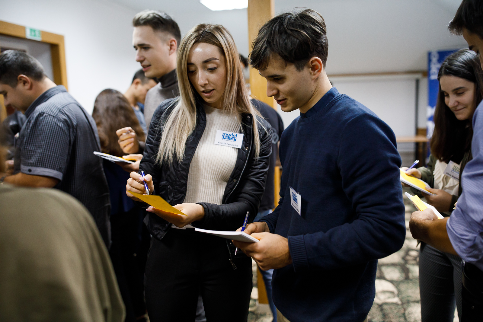 Participants of the Model OSCE for Youth being involved in a teambuilding exercise, 26 September 2019.