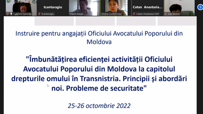 “This webinar also helped the institution in development of its work strategy, including in relation to the left bank. Aspects of monitoring, reporting, advocacy and data collection were also raised. The webinar is very timely, considering that many new staff recently joined the ombudsperson’s institution”, - Ludmila Samoila, National Legal Officer of the OSCE Mission to Moldova noted.