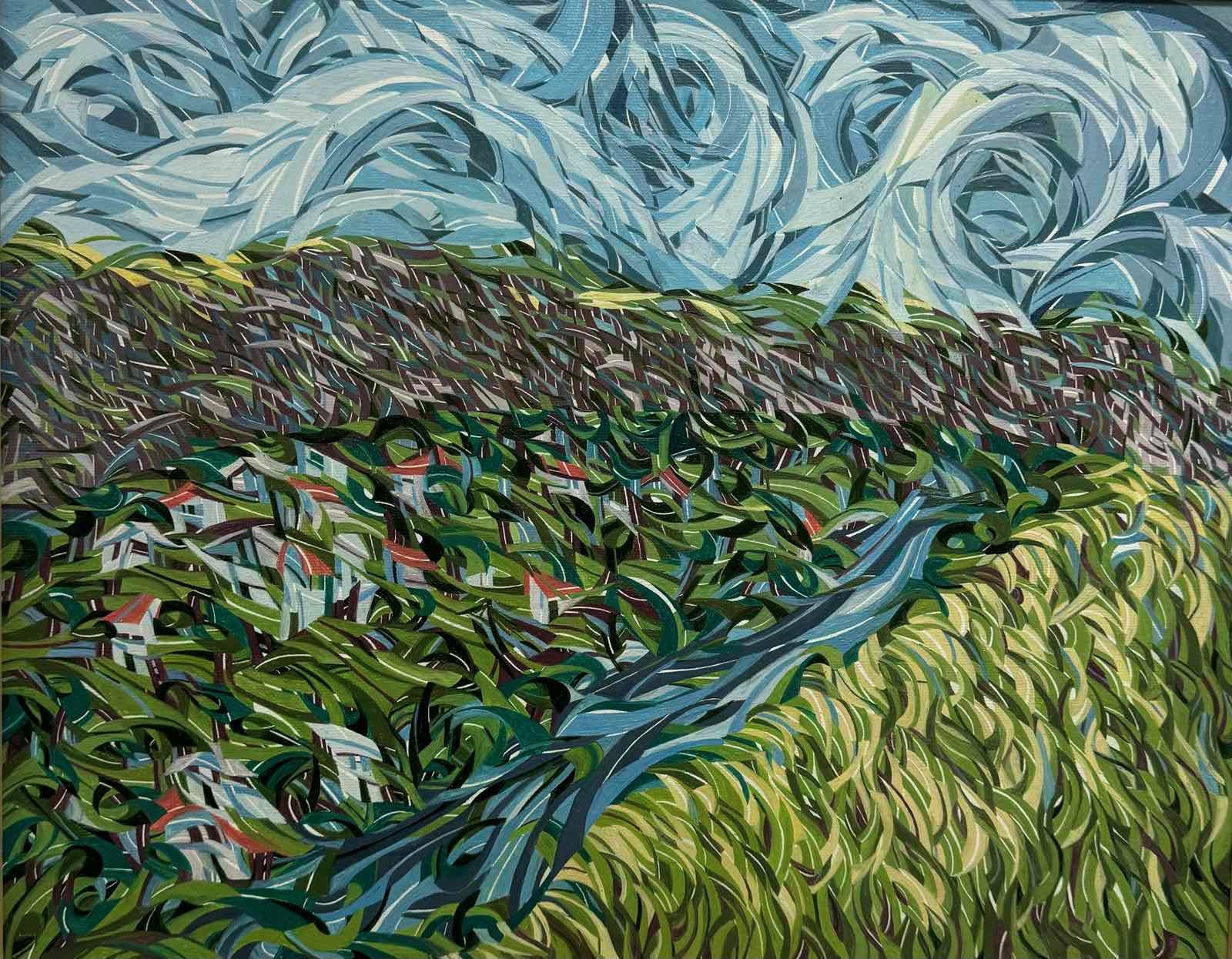 “Stylized Hills, Trebujeni” - Oil on canvas by Evelina Antoci.