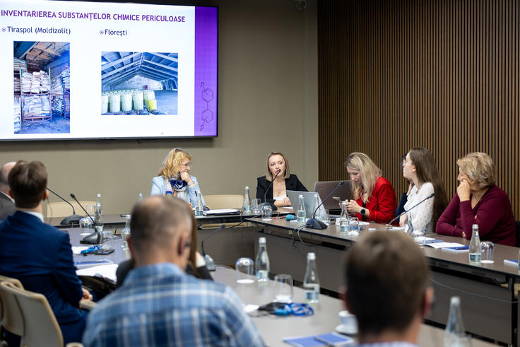 Chemist and project manager Diana Porubin delivering a presentation on chemicals removal from both banks of the Dniester/Nistru River during OSCE public dialogue on eliminating dangerous chemicals and promoting chemical safety in Moldova held on 11 November in Chisinau.