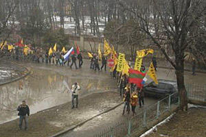 Protestors in front of the OSCE Mission to Moldova's Tiraspol office, 21 February 2006.
