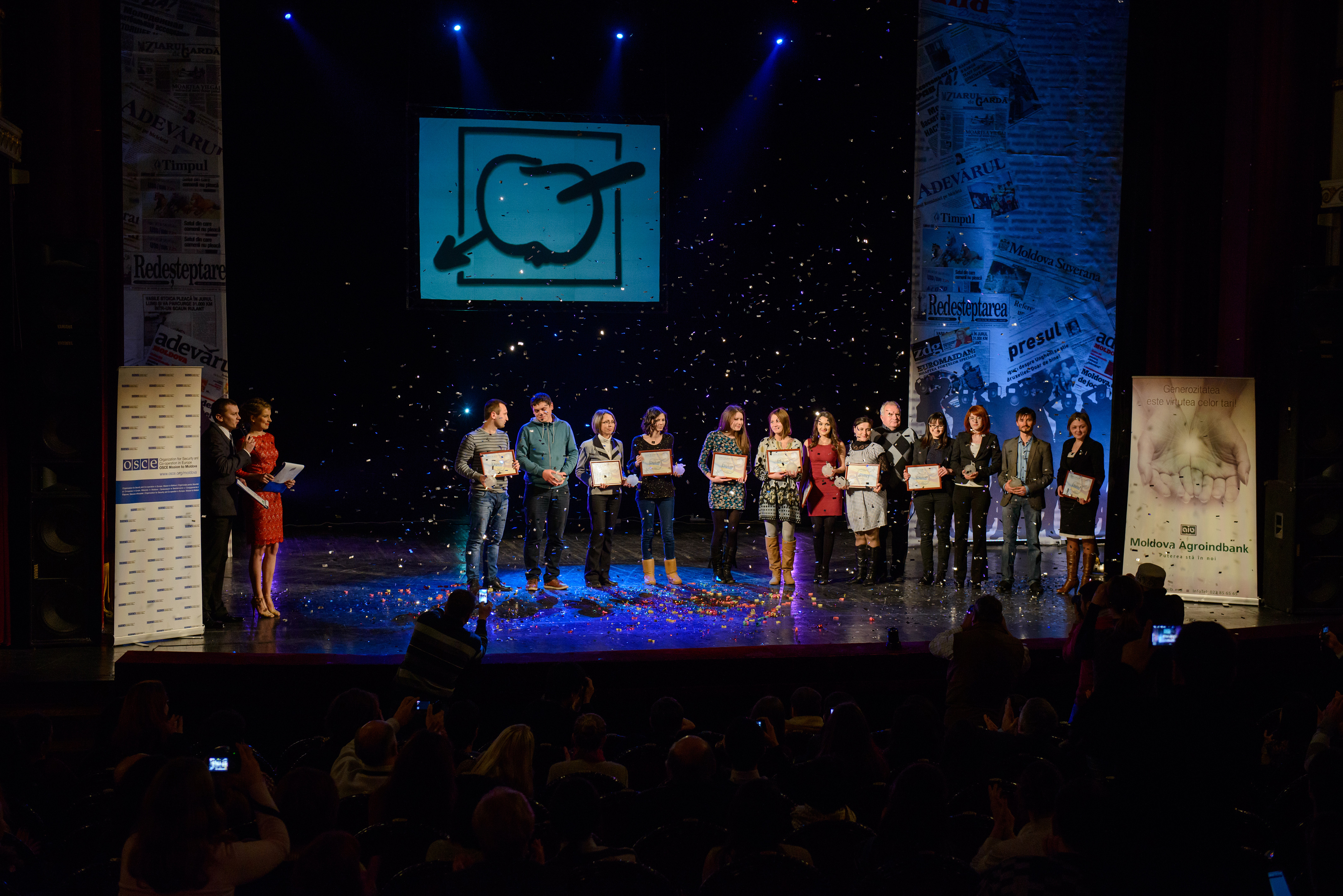 Recipients of the best journalists of the year award at the OSCE-supported Annual Press Club Gala, Chisinau, 19 December 2013.