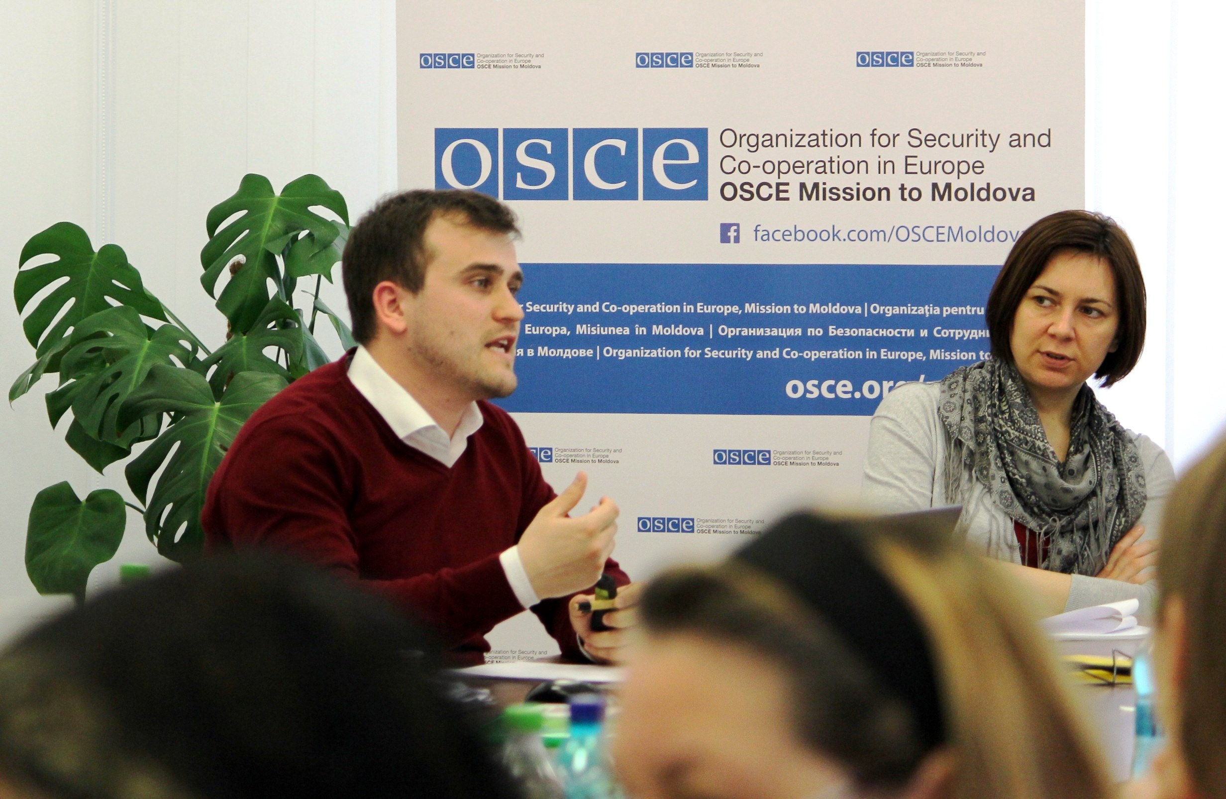 Ilie Chirtoacă of the Legal Resources Centre from Moldova outlines legal registration requirements for NGOs during a Civil Society Club meeting held by the OSCE Mission to Moldova, Chisinau, 26 May 2016.