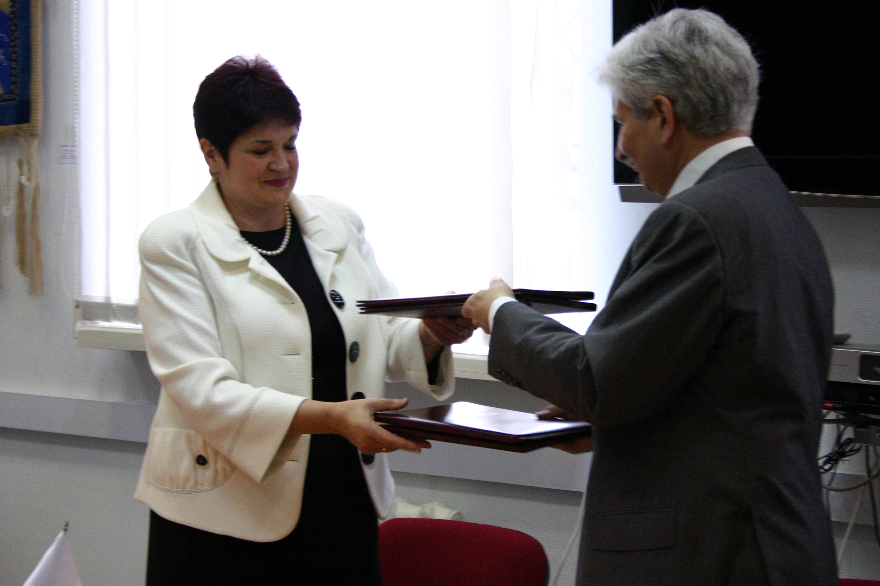 Head of the OSCE Mission to Moldova Amb. Philip Remler (r) and Moldovan Minister of Labour, Social Protection and Family, Valentina Buliga signed a memorandum of understanding on the social reintegration of former army officers, Chisinau, 24 June 2010.