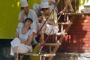 Waitresses at a small restaurant in the Gagauz region of Moldova take a break, summer 2002.
