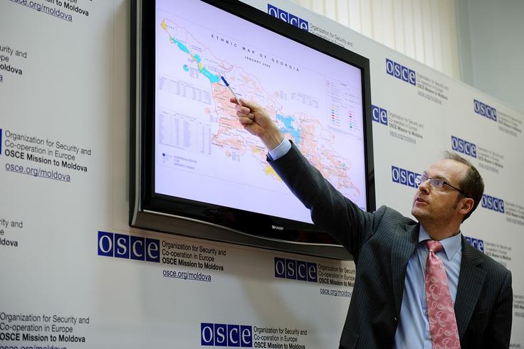 Gottfried Hanne, Deputy Director for Operations Service at the OSCE Secretariat's Conflict Prevention Centre gives a public lecture on international conflict management and resolution efforts, Chisinau, 28 March 2011.