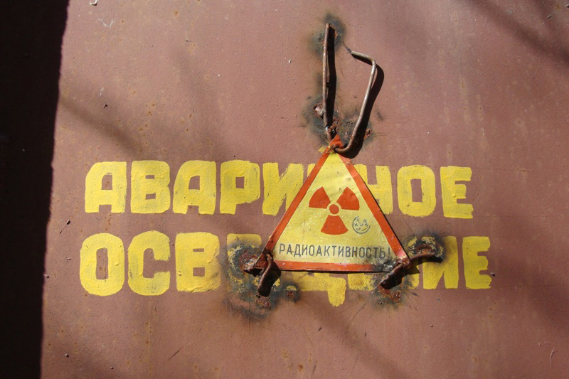 A hazard symbol is displayed on the door of the radioactive waste storage area at the Sugar and Alcohol Plant in Rybnitsa, 15 March 2012.