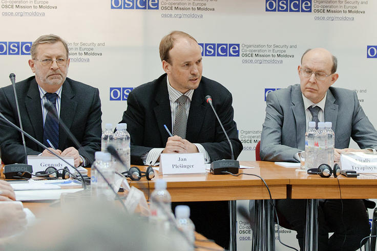 Acting Head of the OSCE Mission to Moldova Jan Plešinger (centre) chairs the meeting, Chisinau, 28 March 2012.