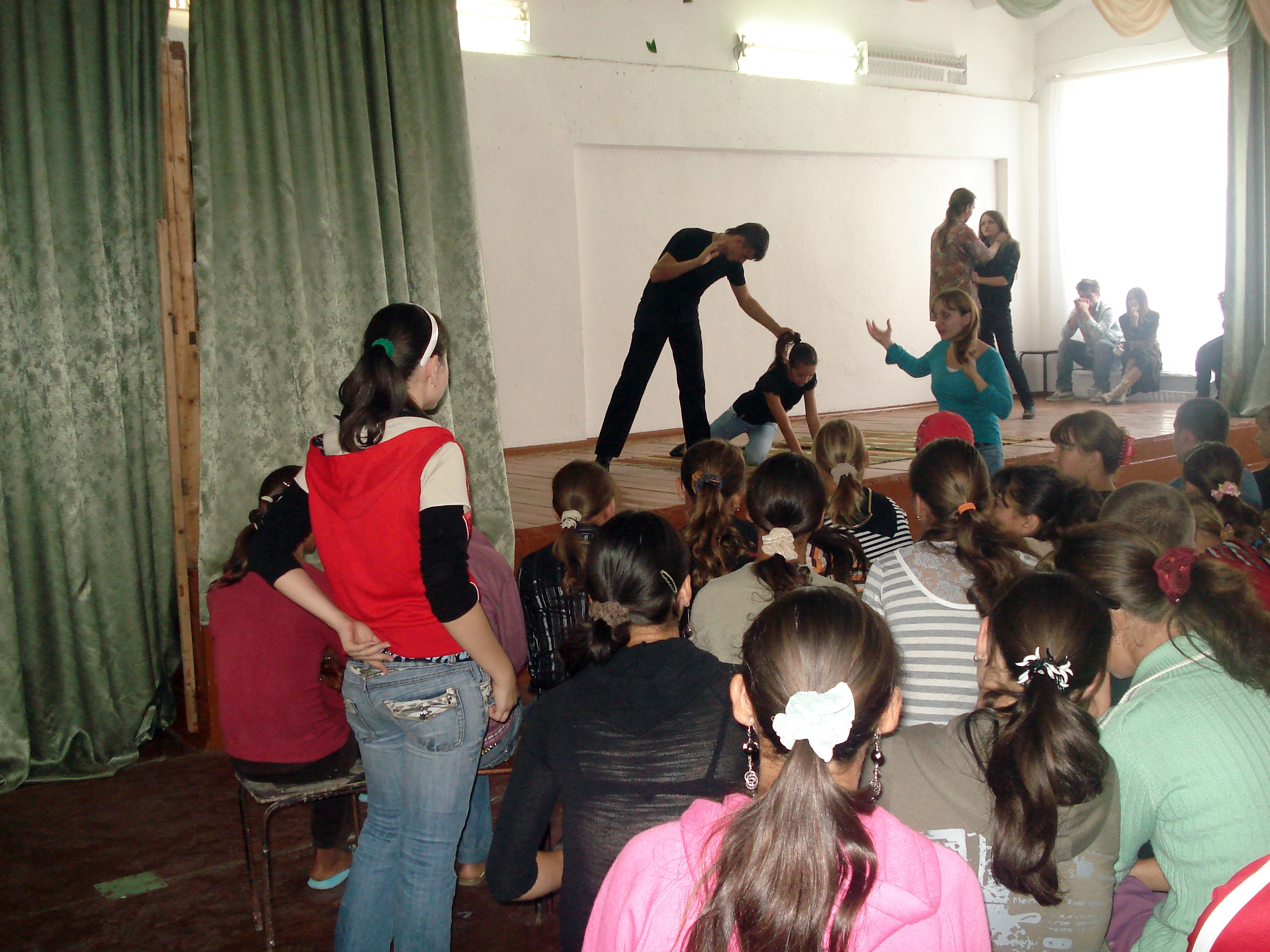 A young audience watches an interactive performance on the theme of human trafficking, in Moldova, 11 September 2008.