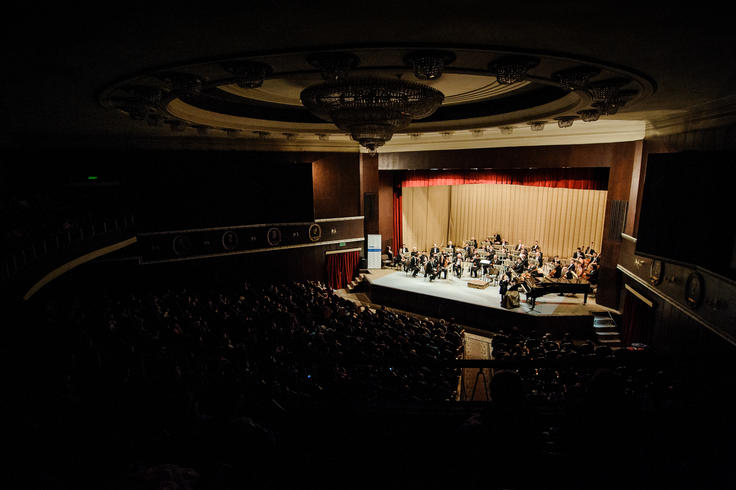 Tineri muzicieni din Chișinău, Tiraspol, Bender, Rîbnița și Pervomaisc concertează împreună la Filarmonica Națională din Chișinău, în cadrul unui concert organizat de Misiunea OSCE în Moldova, Chișinău, 4 februarie 2015.