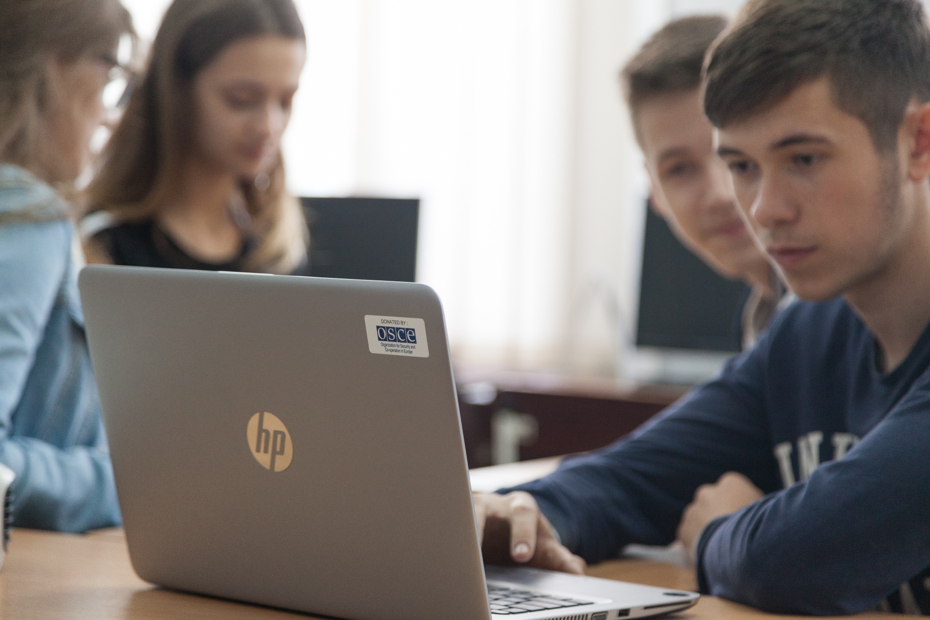 Elevii din cadrul Liceului Teoretic Lucian Blaga din Tiraspol folosesc un calculator donat de OSCE, 17 mai 2019.