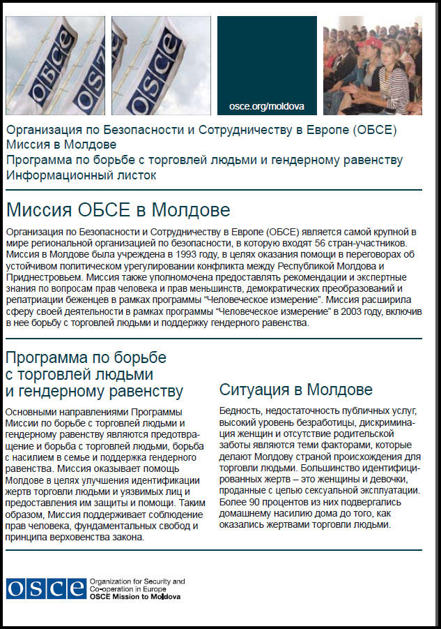 Миссия в Молдове - Программа по борьбе с торговлей людьми и гендерному равенству Информационный листок