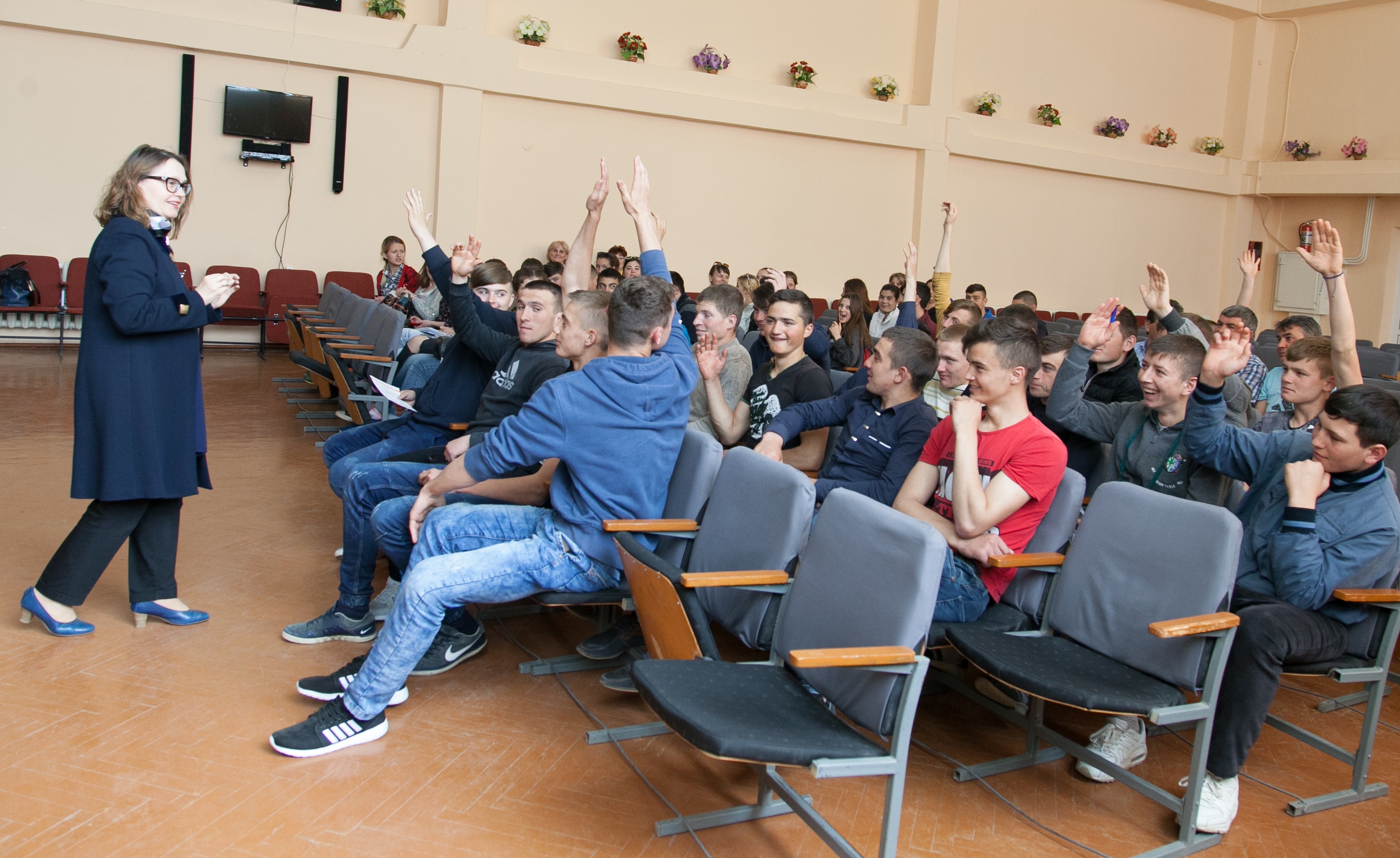 Валентина Бодруг-Лунгу, Директор НПО "Гендер-Центр" ('Gender Centru'), беседует со студентами профессиональной школы муниципия Бэлць в рамках серии лекций Миссии ОБСЕ в Молдове для продвижения равенства полов и борьбы с домашним насилием в Молдове. Бэлць, 2 мая 2017.