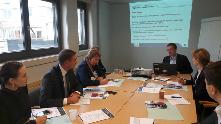 Представители молдавских властей, борющихся с торговлей людьми, изучают опыт бельгийских коллег во время ознакомительного визита, поддержанного ОБСЕ, Брюссель, 23 октября 2017.