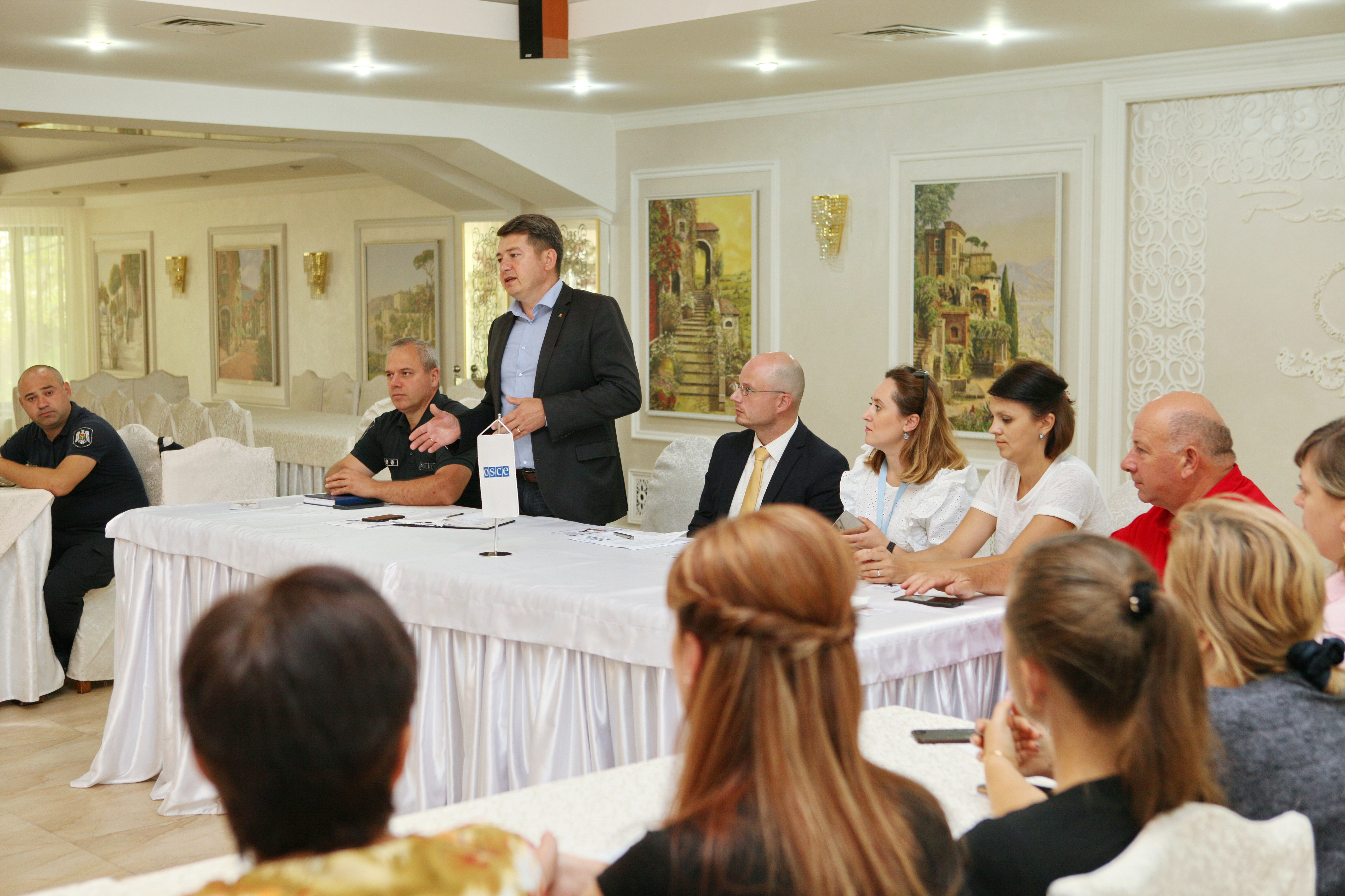Виталий Жосану, заместитель председателя района Дрокия, призывает участников делится уникальным опытом Центра по консультированию семейных агрессоров, который впервые начал работать как с жертвами, так и с виновниками насилия в семье, Дрокия/Молдова, 24 июля 2019 года.