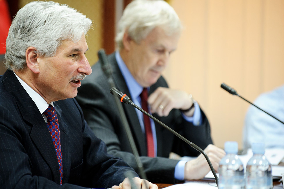 Посол Филип Ремлер, Глава Миссии ОБСЕ в Молдове во время круглого стола по вопросам сотрудничества между берегами реки Днестр/Нистру в области охраны окружающей среды, Вадул-луй-Водэ, Молдова, 29 марта 2011.